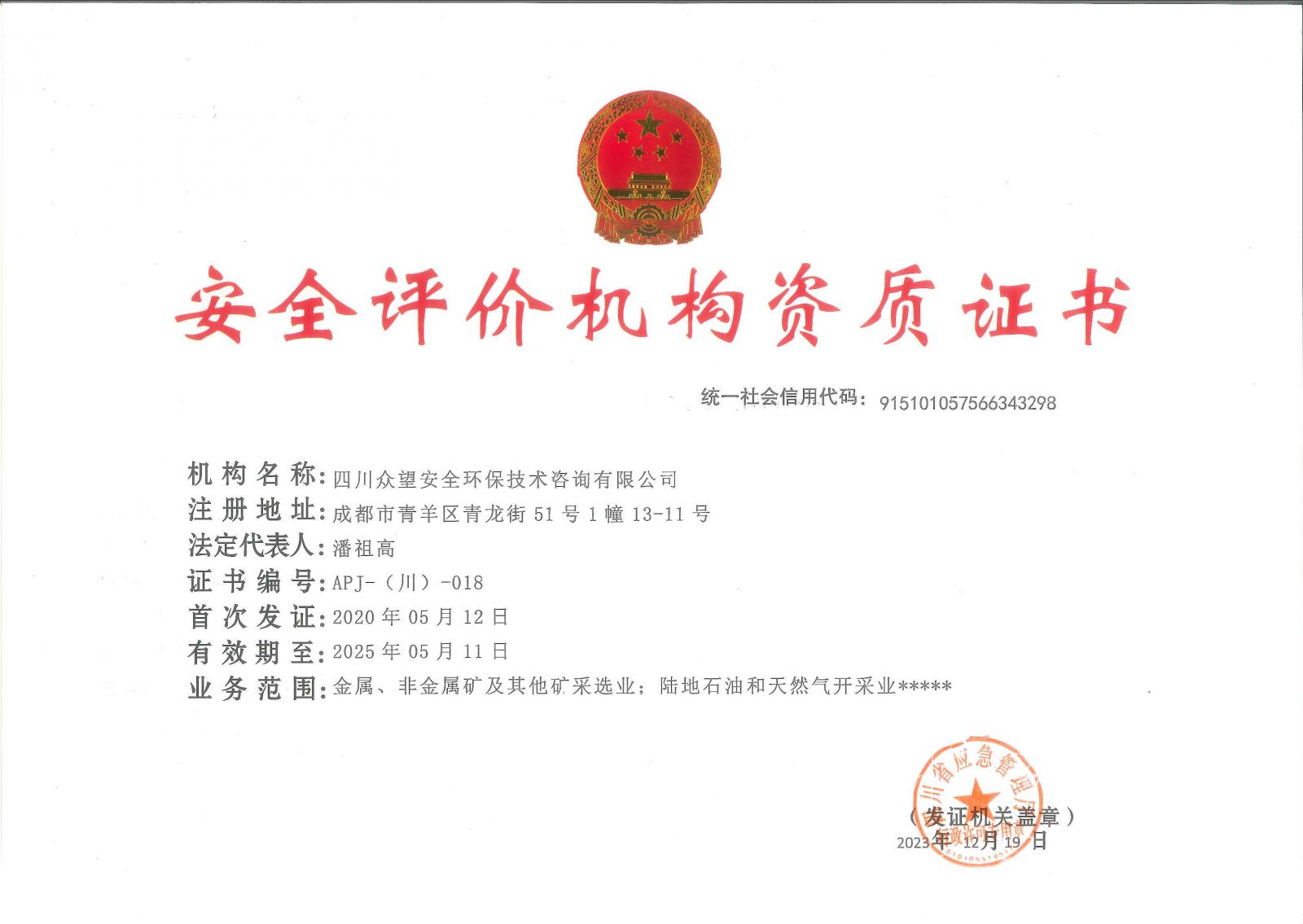 四川眾望安全環保技術咨詢有限公司 電 話:028-86258172/86258173/028-86258174/86258095 傳 真:028-86258093/86258552